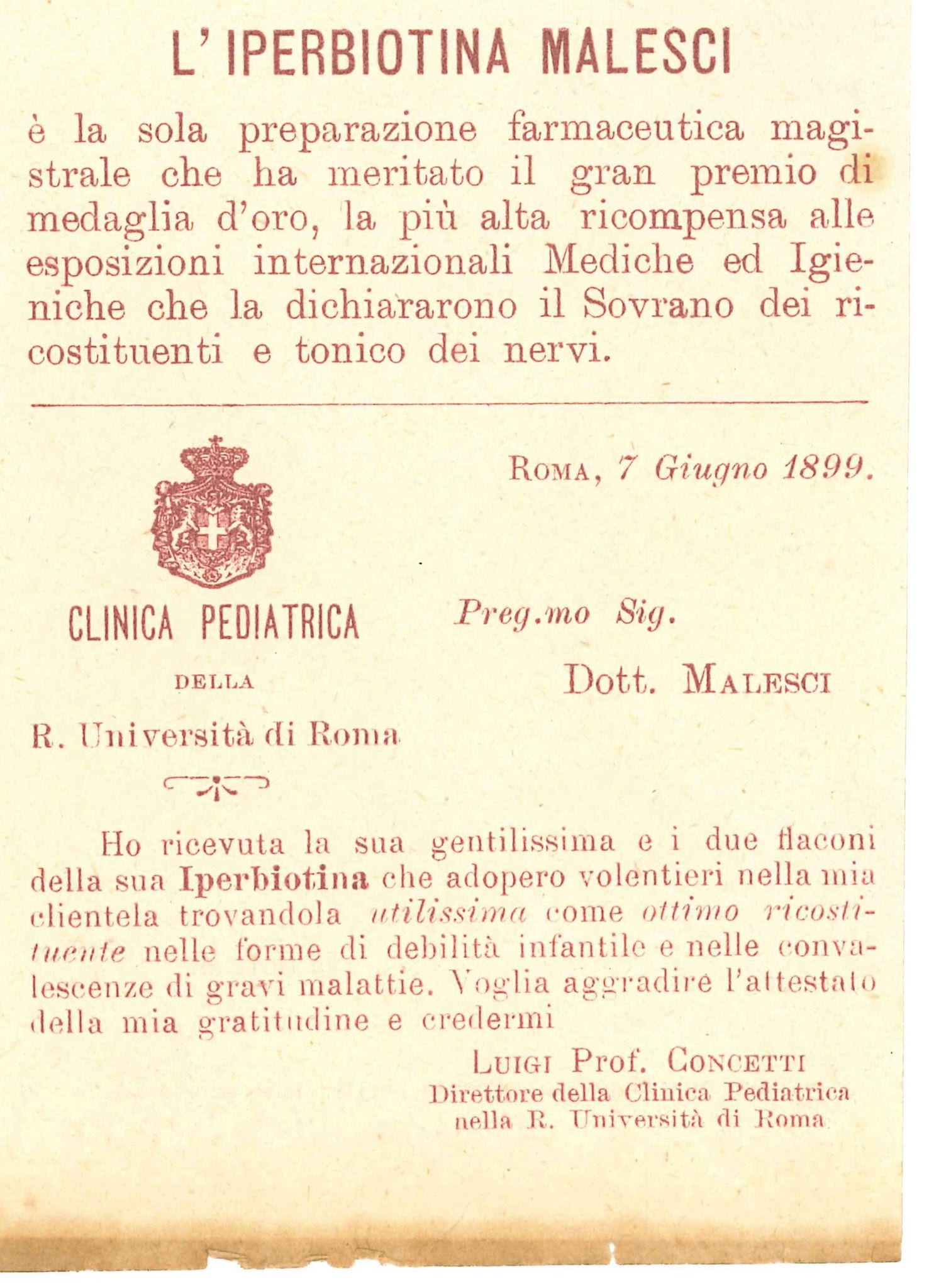 Il figlio di Pietro, Carlo, nel solco della tradizione tracciato dal padre, inaugurò, nel 1896, una “Officina Farmaceutica”, attigua alla vecchia bottega. In quegli anni, nell’officina fiorentina si svilupparono e approfondirono le tecniche per la produzione di preparati galenici e specialità medicinali, fra i quali, per esempio, la “Iperbiotina Malesci”, un tonico ricostituente che ebbe larga diffusione in Italia e America Latina.